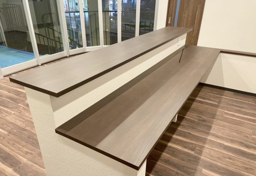 オーナー様と予算・イメージを随時打合せをして作っていきました。カウンター寸法・FIX・デシャップ等の寸法も厨房器具合わせで見えないように施工しています。