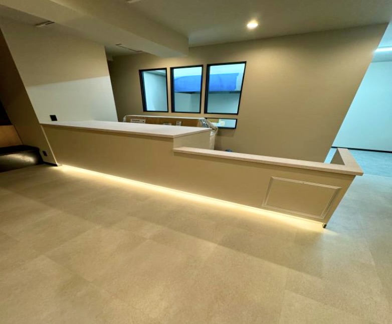 クリニックと就労支援の施設の改修工事で、スケルトンから工事を行いました。施工期間:45日工程